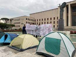 Studenti e studentesse si sono accampati con le proprie tende di fronte alla Sapienza per protestare contro gli affitti diventati ormai insostenibili. La protesta, partita da Milano con Ilaria Lamera del Politecnico del capoluogo lombardo, è un atto dimostrativo con cui i ragazzi e le ragazze vogliono portare alla luce il problema delle sistemazioni abitative a Roma.