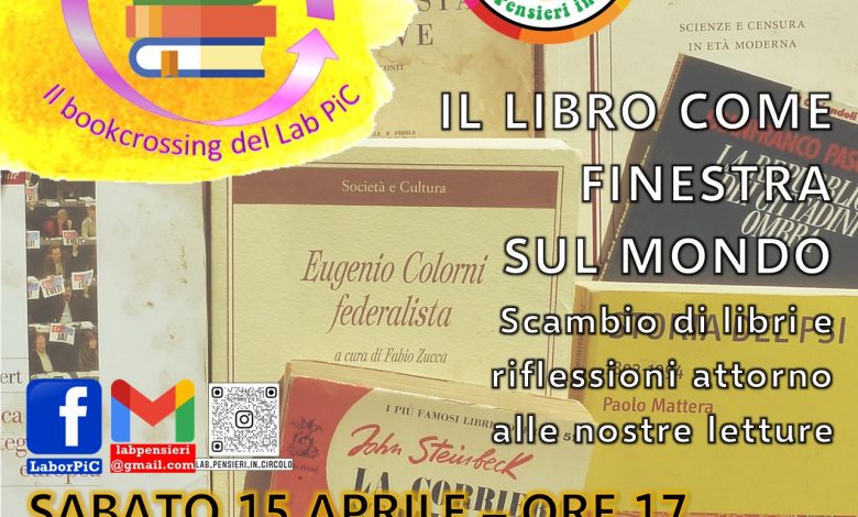 bookcrossing partecipato del Laboratorio Pensieri in Circolo. Sarà quindi un’occasione per scambiare libri, ma soprattutto per discutere il contenuto delle nostre letture e mettere così in circolo le nostre riflessioni. Utilizzare i libri per creare una condivisione di conoscenze e ragionamenti, questo è l’intento che ci spinge.
