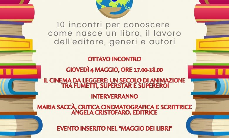 La casa editrice AG Book Publishing, pertanto, ha voluto inserire nel suo programma due appuntamenti del ciclo “Leggere ti fa guardare lontano”. Il 4 maggio si parlerà insieme a Maria Saccà del cinema da leggere: un secolo di animazione tra fumetti, superstar e supereroi; il 18 maggio con Monia Margheriti di parole, pennelli e colori: il libro